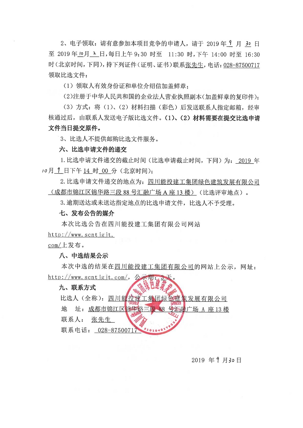 四川能投建工集团绿色建筑发展有限公司空调采购比选公告