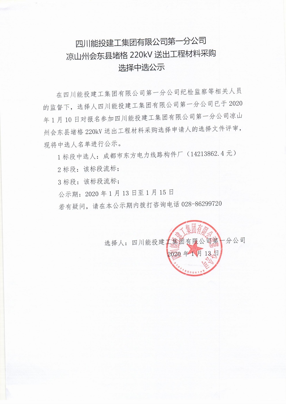 上一条:凉山会东县雪山风电场送出工程(会东县拉马升压站至会东500千伏变电站220千伏线路工程)材料采购选择中选公示