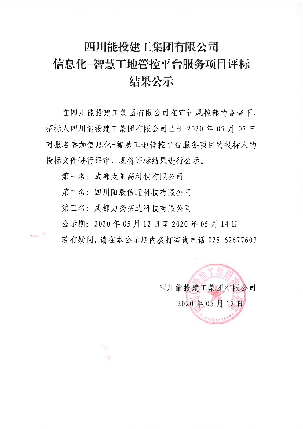 信息化-智慧工地管控平台服务项目评标结果公示