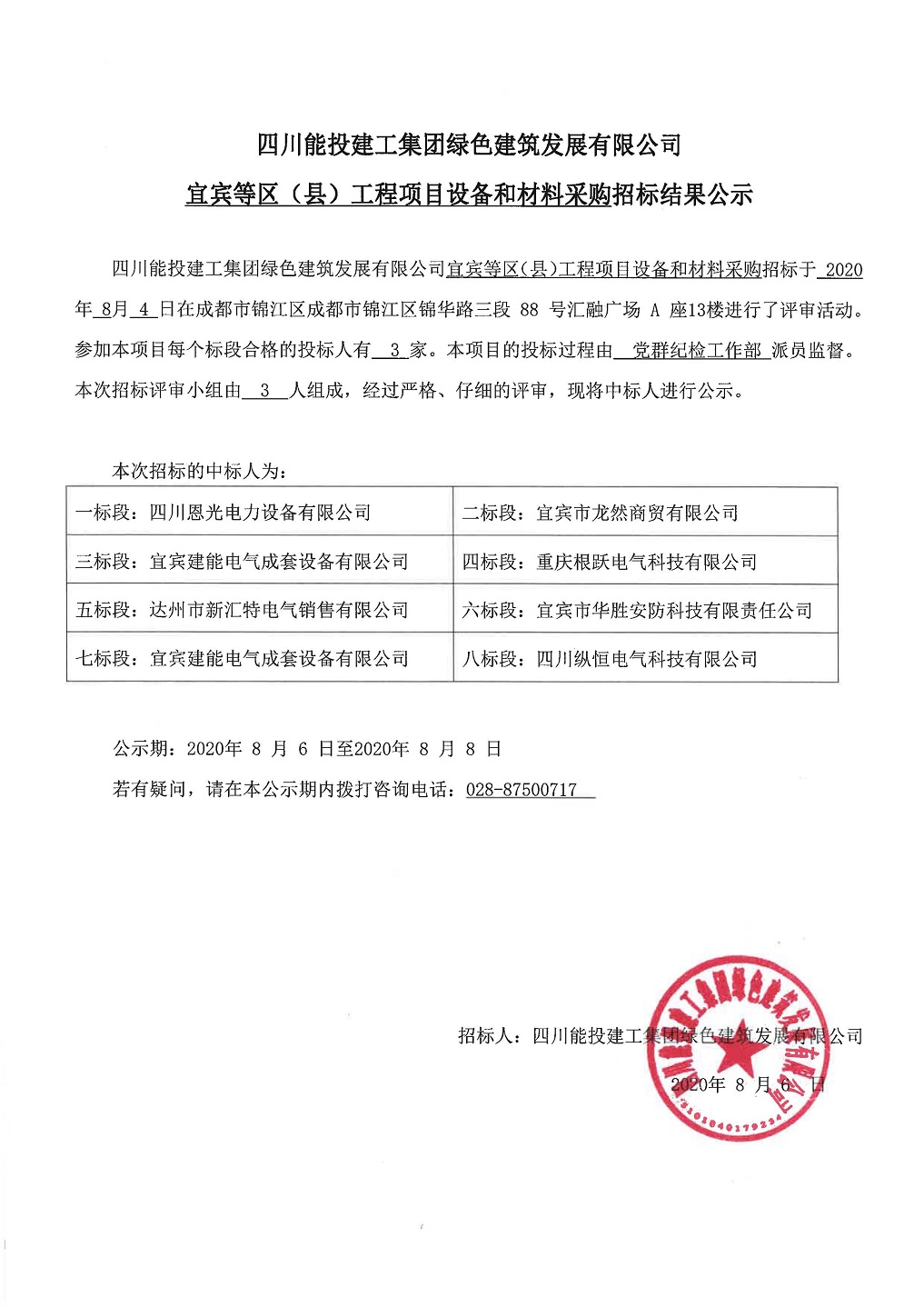 宜宾等区(县)工程项目设备和材料采购招标结果公示