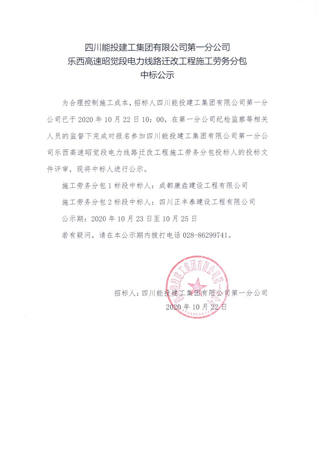 乐西高速昭觉段电力线路迁改工程施工劳务分包中标公示