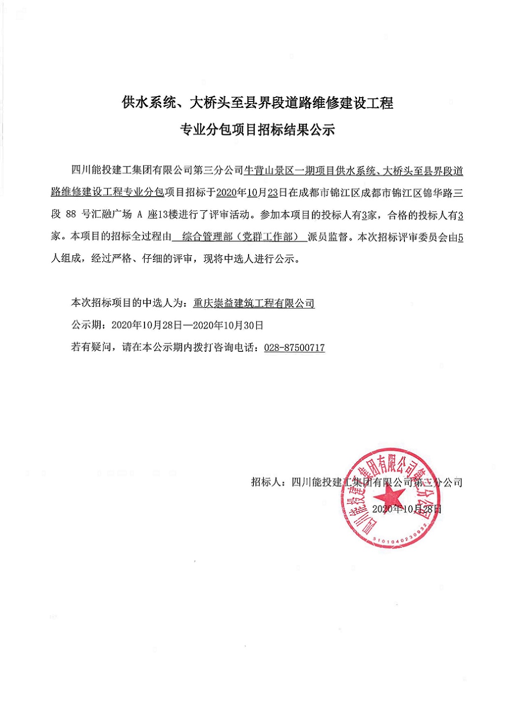 上一条:牛背山景区一期项目景区内部道路街心花园至牛背山顶段建设工程检测服务招标公告