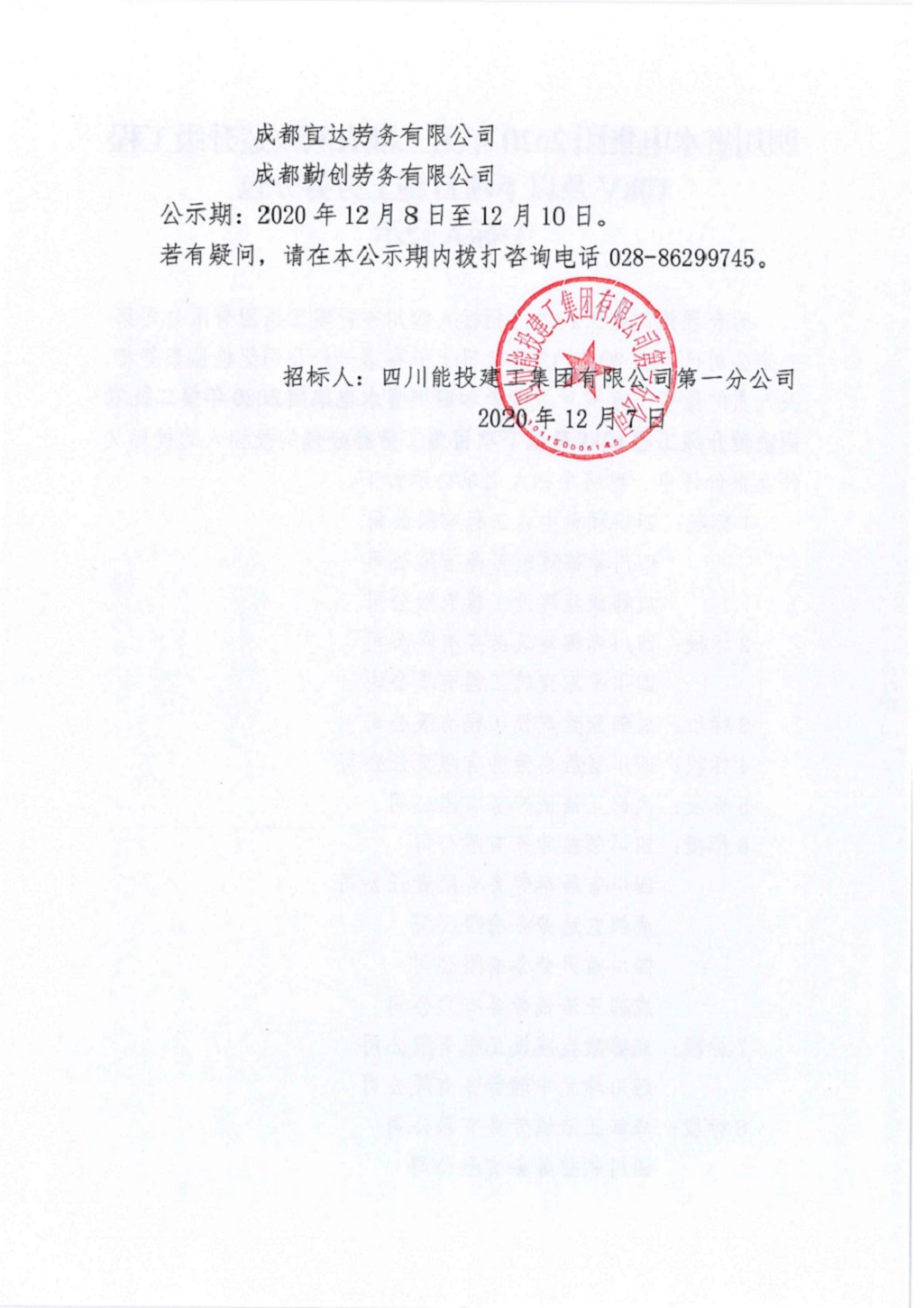 四川省水电集团2020年第二批农网改造升级工程10KV及以下项目施工劳务分包中标公示
