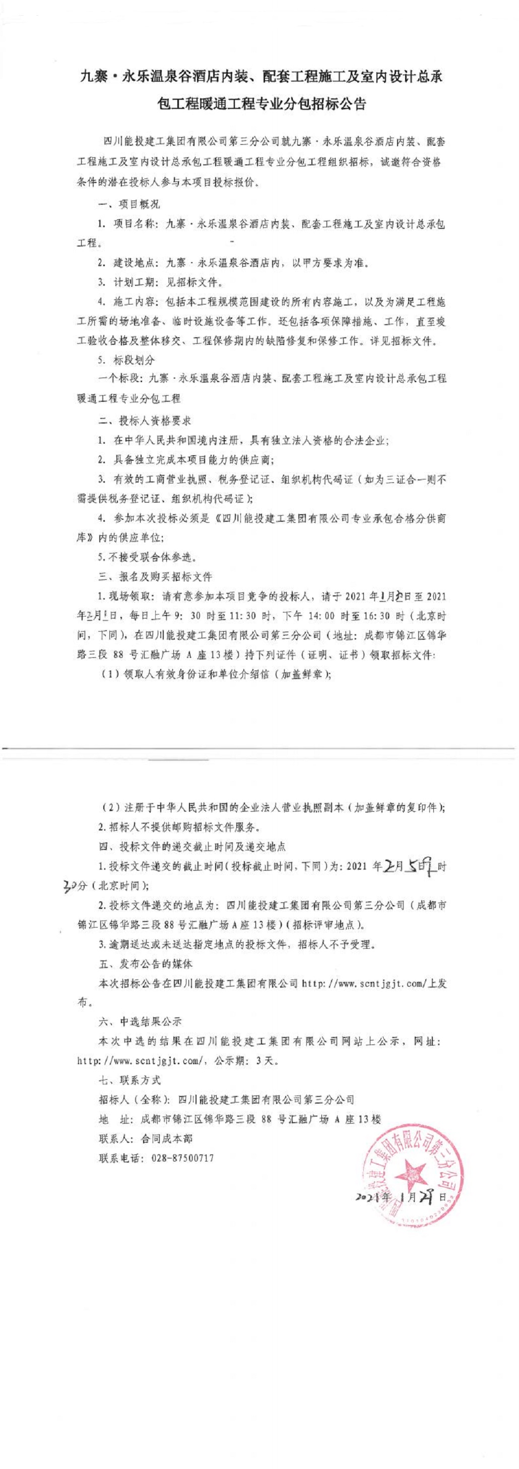 下一条:九寨.永乐温泉谷酒店内装、配套工程施工及室内设计总承包工程弱电专业分包招标公告