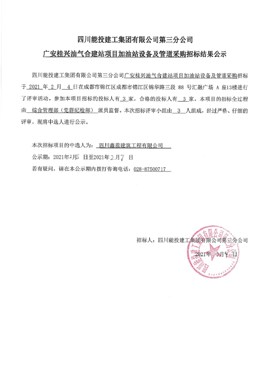 广安桂兴油气合建站项目加油站设备及管道采购招标结果公示