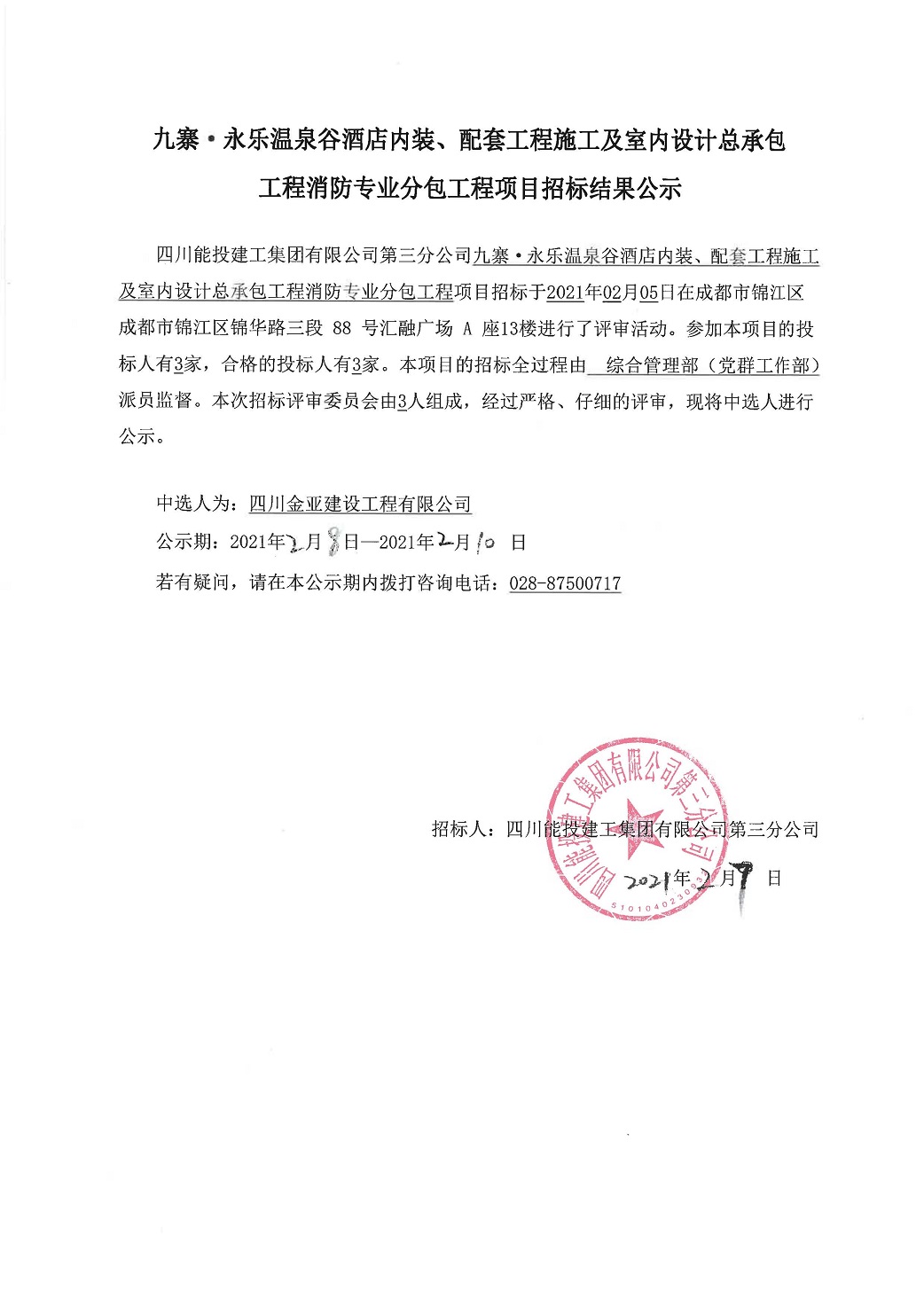 上一条:九寨.永乐温泉谷酒店内装、配套工程施工及室内设计总承包工程给排水工程、电气工程、热水系统工程专业分包招标结果公示