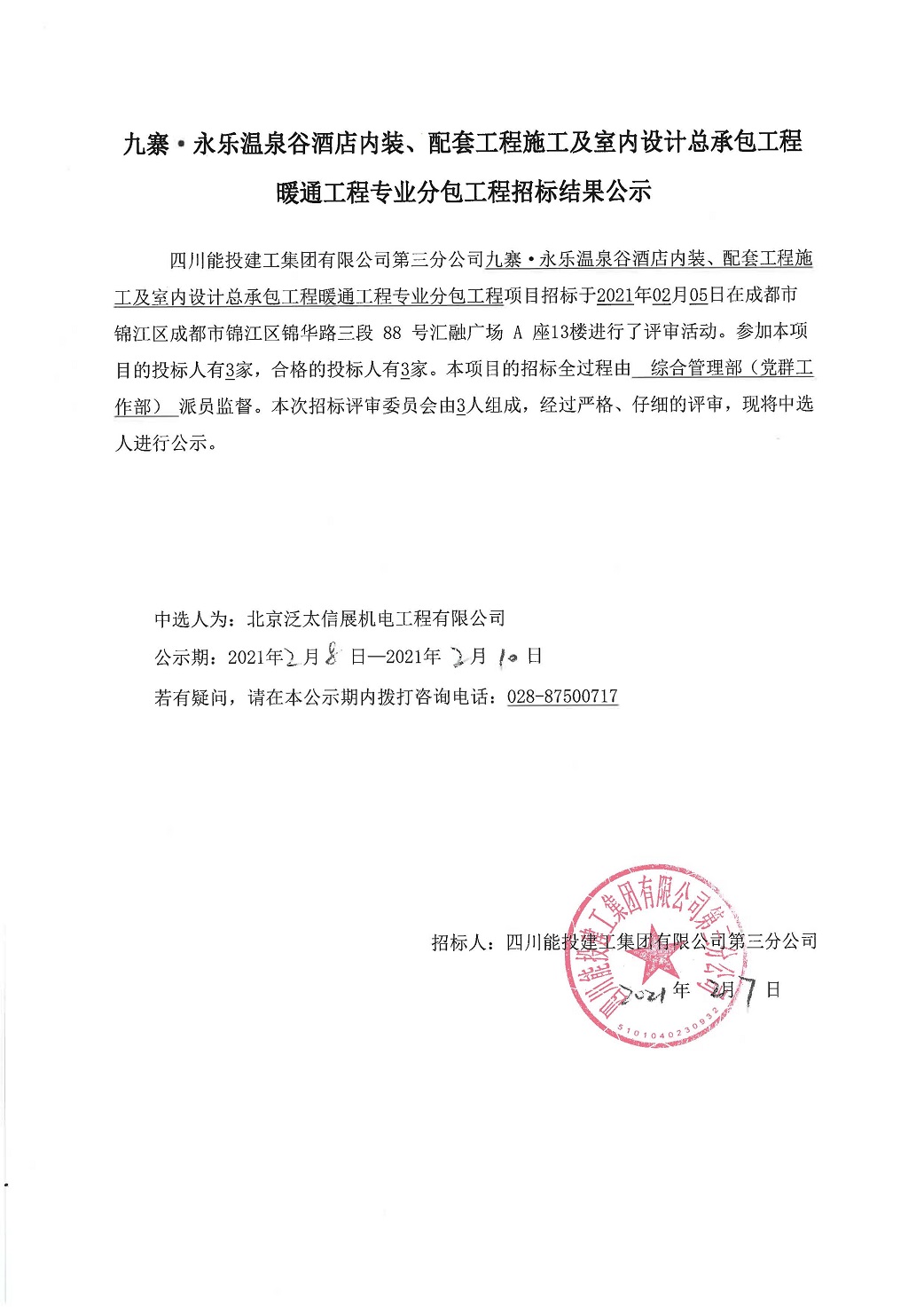 下一条:九寨.永乐温泉谷酒店内装、配套工程施工及室内设计总承包工程给排水工程、电气工程、热水系统工程专业分包招标结果公示