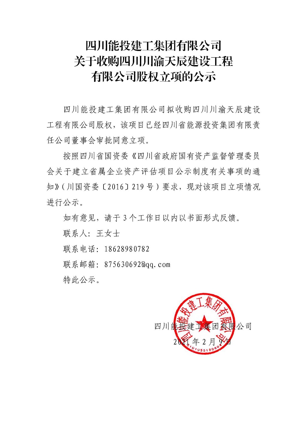 ky开元官方版关于收购四川川渝天辰建设工程有限公司股权立项的公示