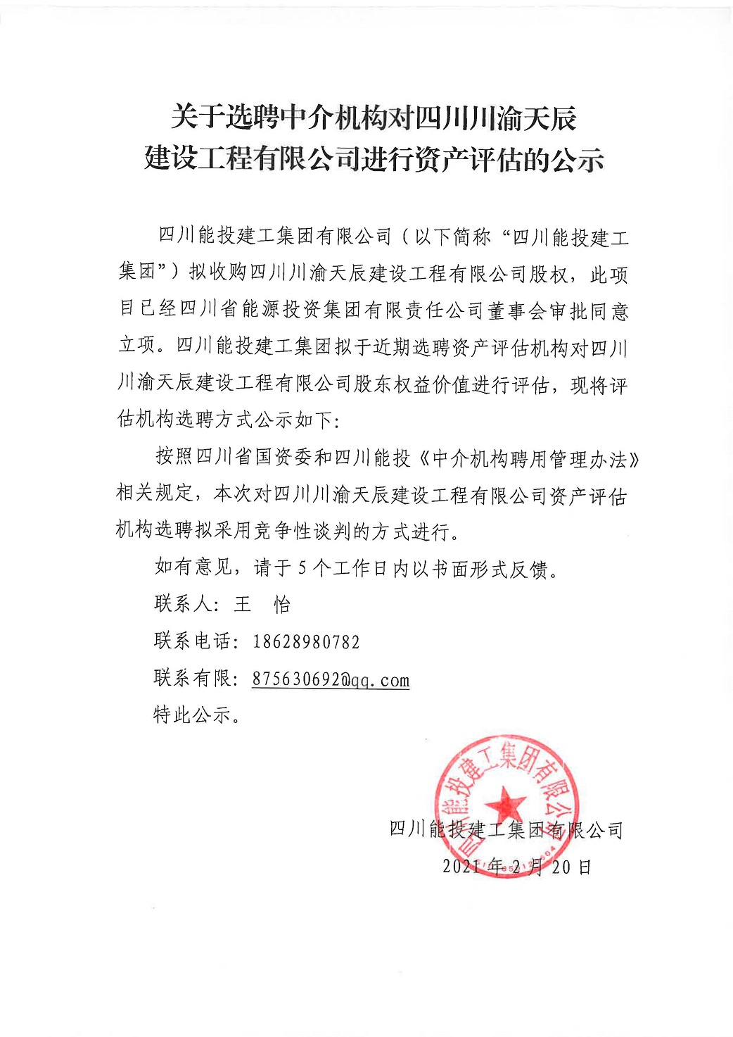 关于选聘中介机构对四川川渝天辰建设工程有限公司进行资产评估的公示