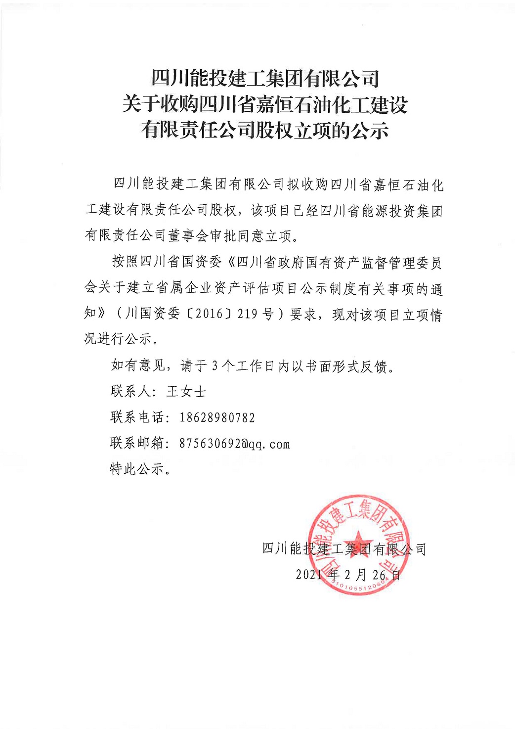 ky开元官方版关于收购四川省嘉恒石油化工建设有限责任公司股权立项的公示