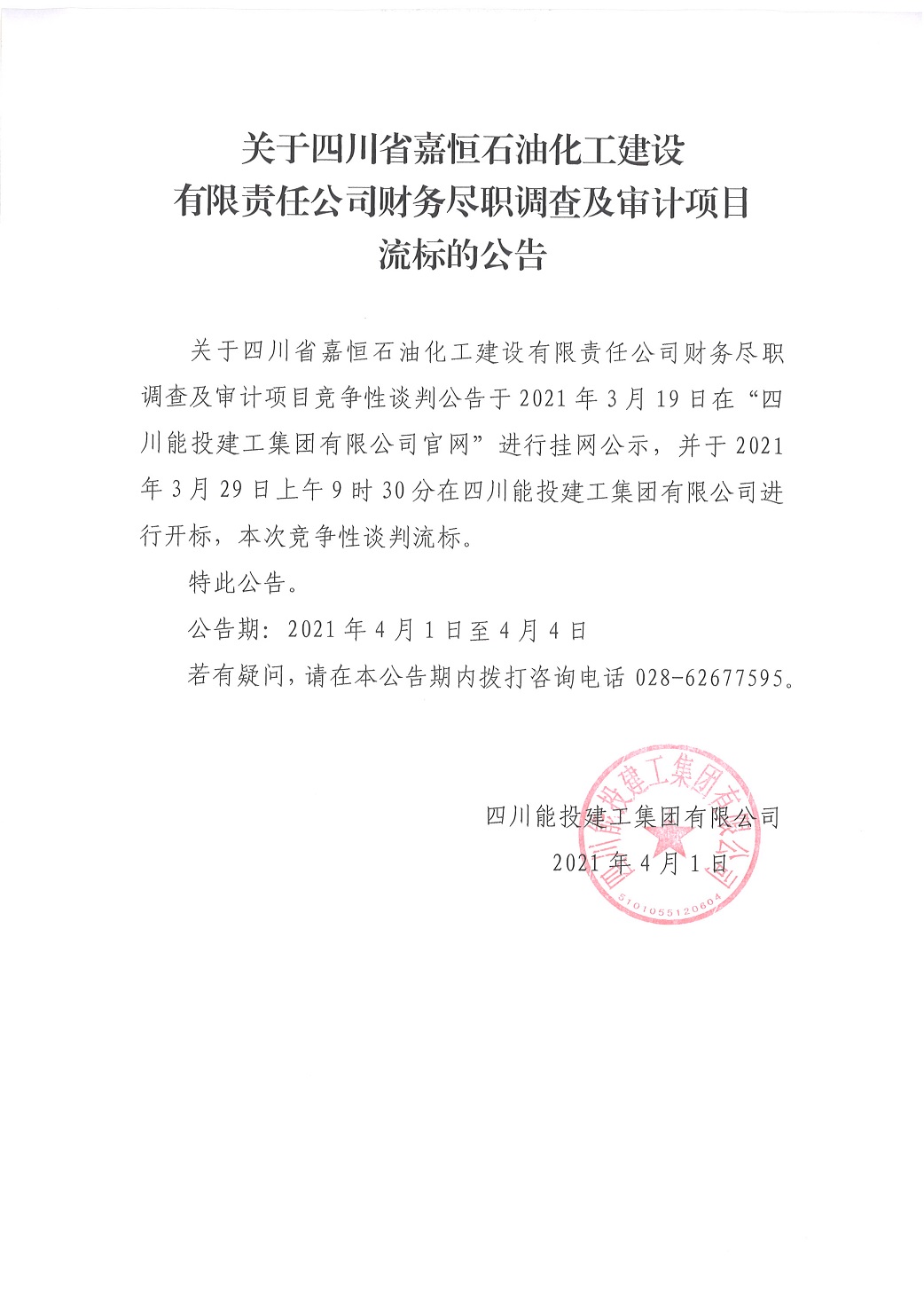 关于四川省嘉恒石油化工建设有限责任公司财务尽职调查及审计项目流标的公告