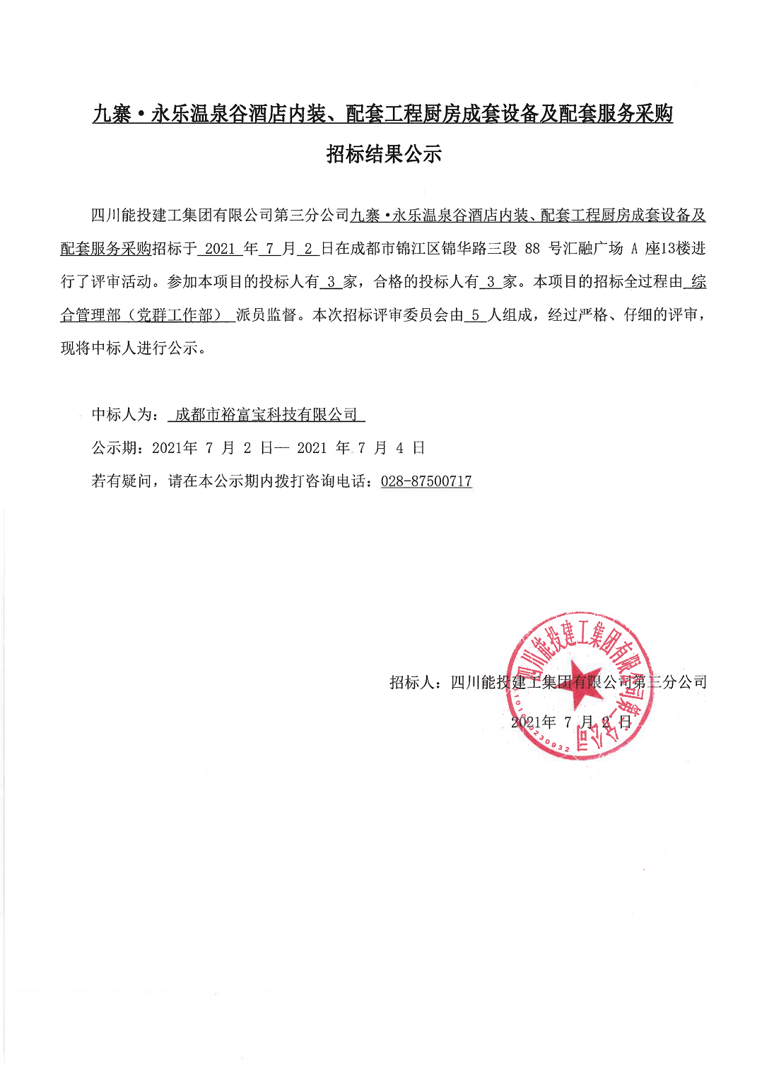 上一条:九寨·永乐温泉谷酒店内装、配套工程洗衣房成套设备及配套服务采购招标结果公示