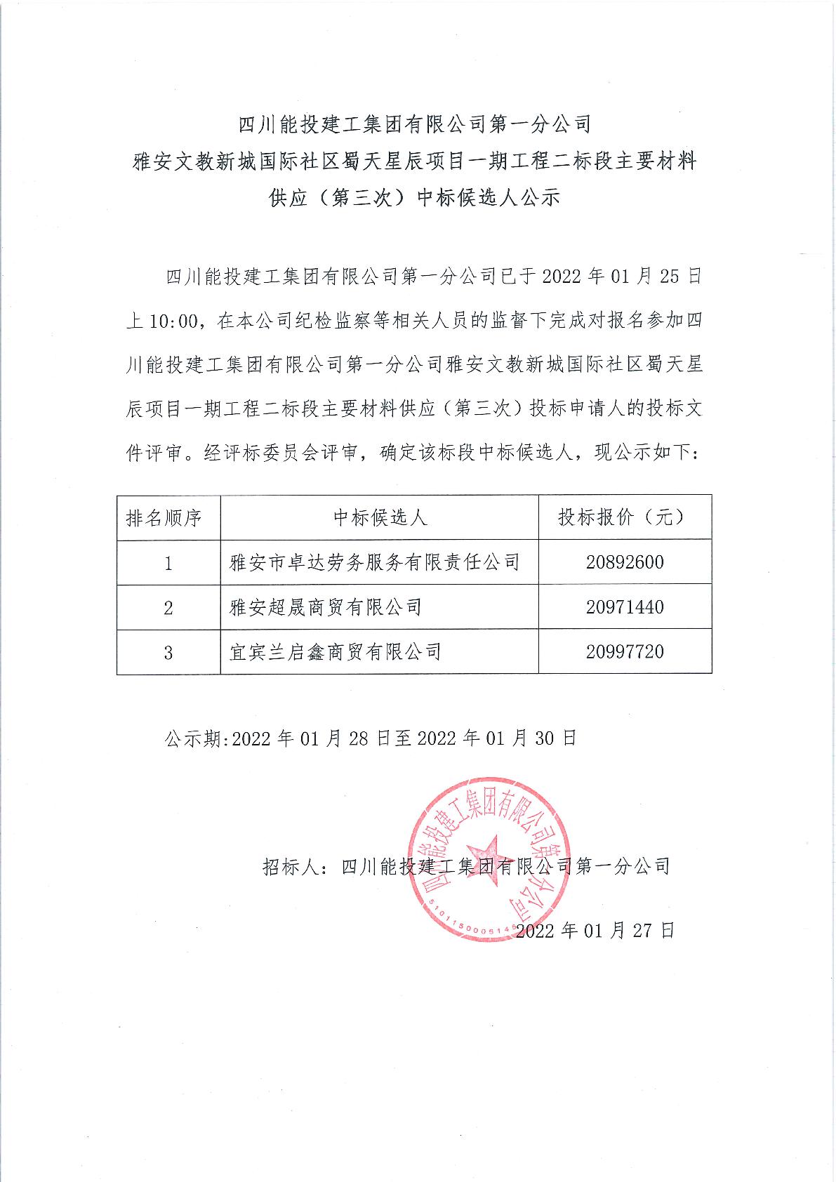 上一条:雅安文教新城国际社区蜀天星辰项目一期工程三标段1#住宅、1#商业、2#商业其他辅助材料供应(第二次)中标候选人公示
