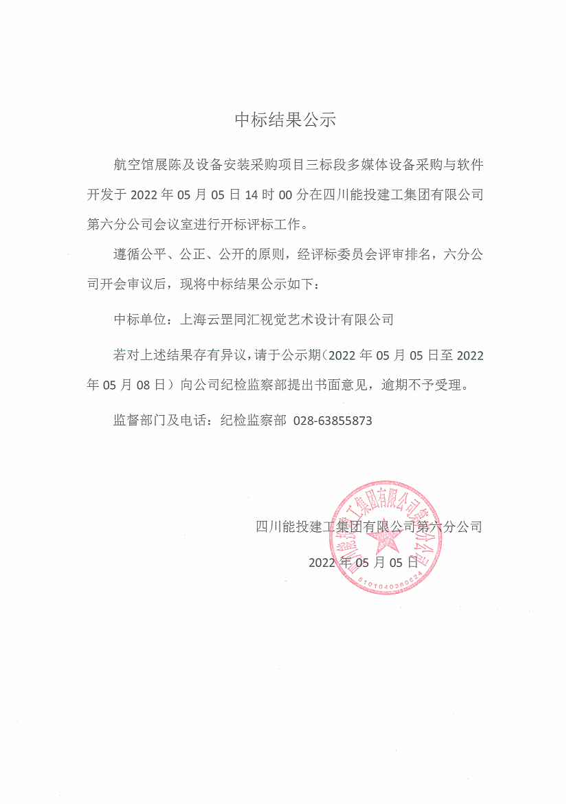 下一条:航空科技馆展陈及设备安装采购项目二标段设备模型与工程材料采购中标结果公示