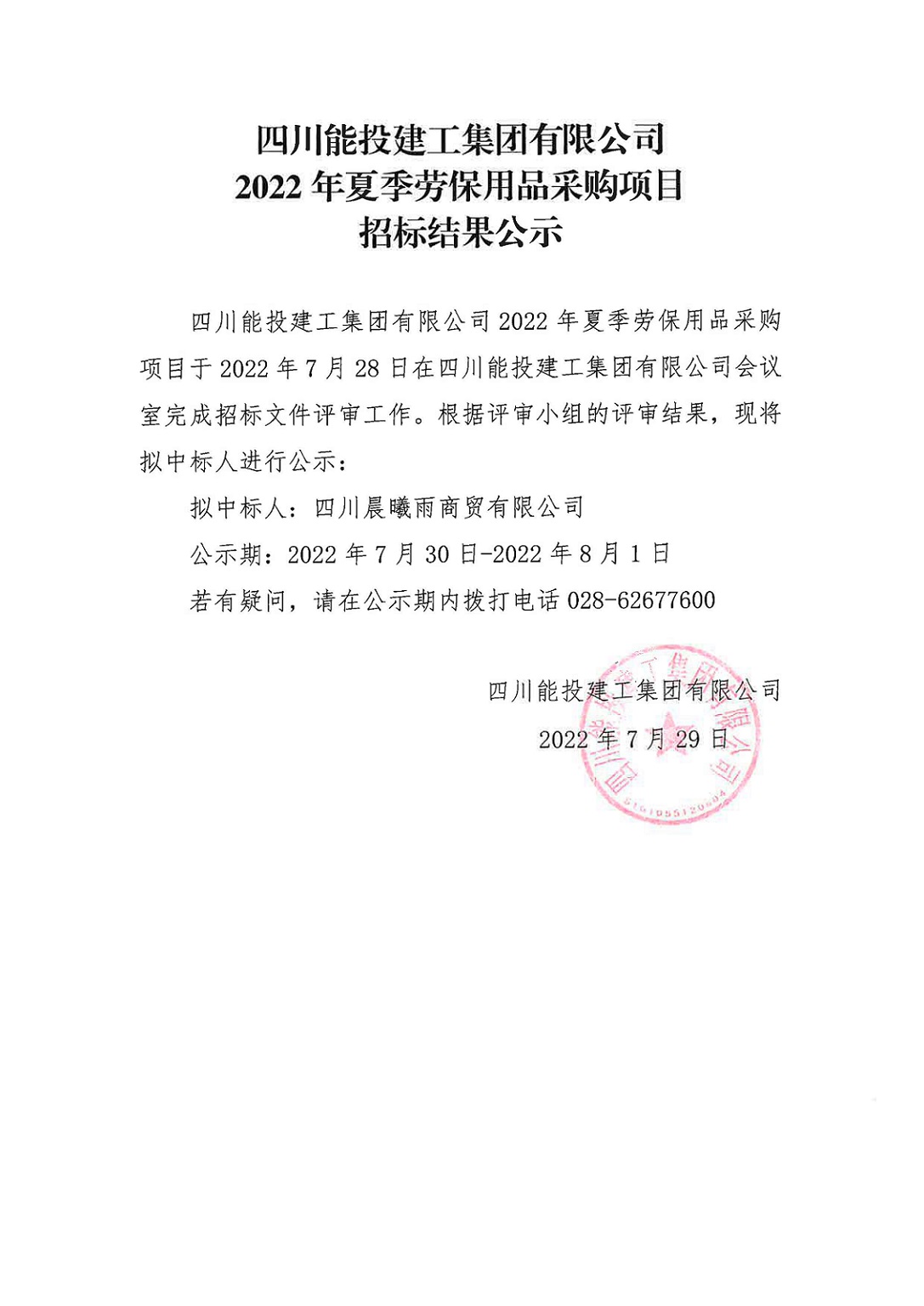 ky开元官方版2022年夏季劳保用品采购项目招标结果公示