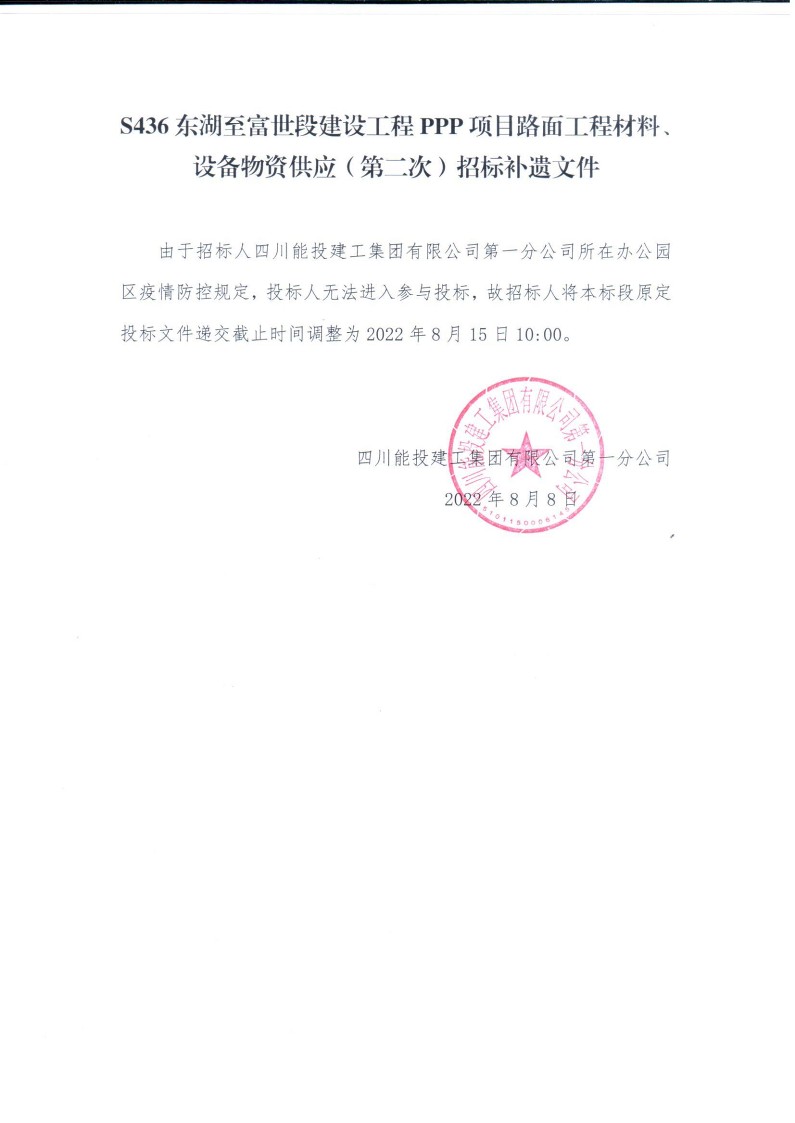 S436东湖至富世段建设工程PPP项目路面工程材料、设备物资供应(第二次)招标补遗文件