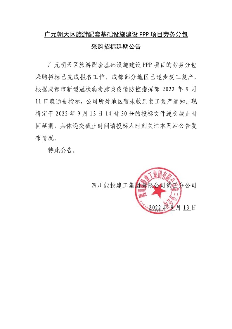 营山县城至清水湖旅游公路建设工程交安、绿化专业分包招标延期公告