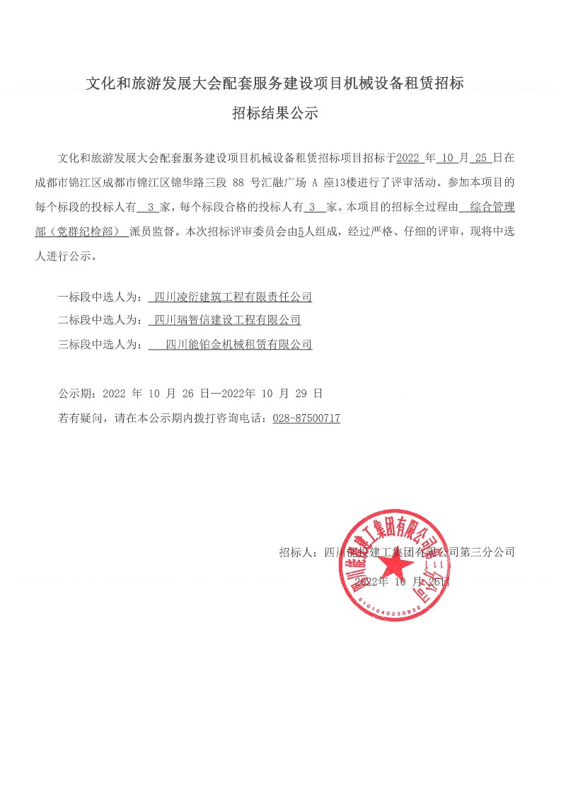 机械设备租赁招标结果公示