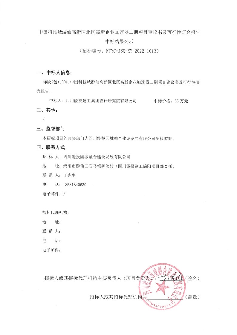 中国科技城游仙高新区北区高新企业加速器二期项目建议书及可行性研究报告中标结果公示