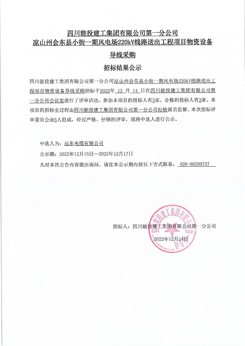 合江县龙潭220千伏输变电新建工程线路部分设计采购及施工总承包(EPC)项目施工劳务分包(四川段)招标结果公示