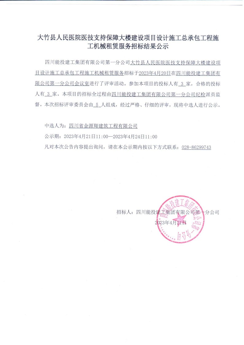 下一条:大竹县人民医院医技支持保障大楼建设项目设计施工总承包工程施工劳务分包招标结果公示