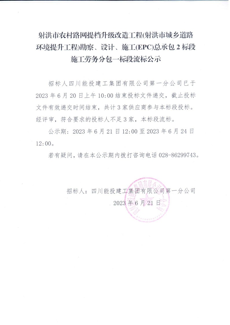 下一条:射洪市农村路网提档升级改造工程(射洪市城乡道路环境提升工程)勘察、设计、施工(EPC)总承包2标段材料采购流标公示