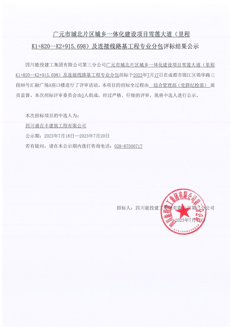 上一条:射洪市农村路网提档升级改造工程(射洪市城乡道路环境提升工程)勘察、设计、施工(EPC)总承包2标段施工机械租赁服务(第二次)中标公示