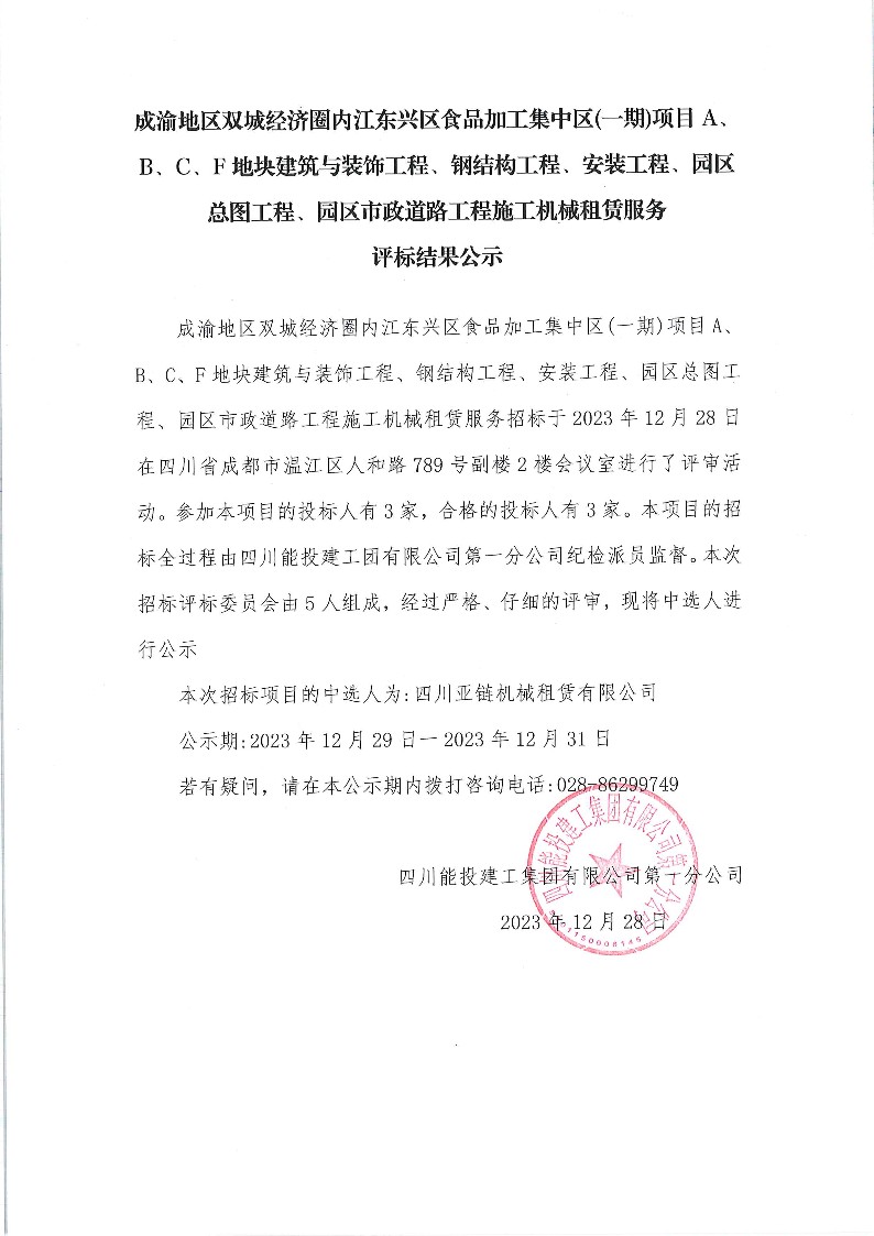 上一条:成渝地区双城经济圈内江东兴区食品加工集中区(一期)项目建筑工程一切险及第三者责任险项目结果公示