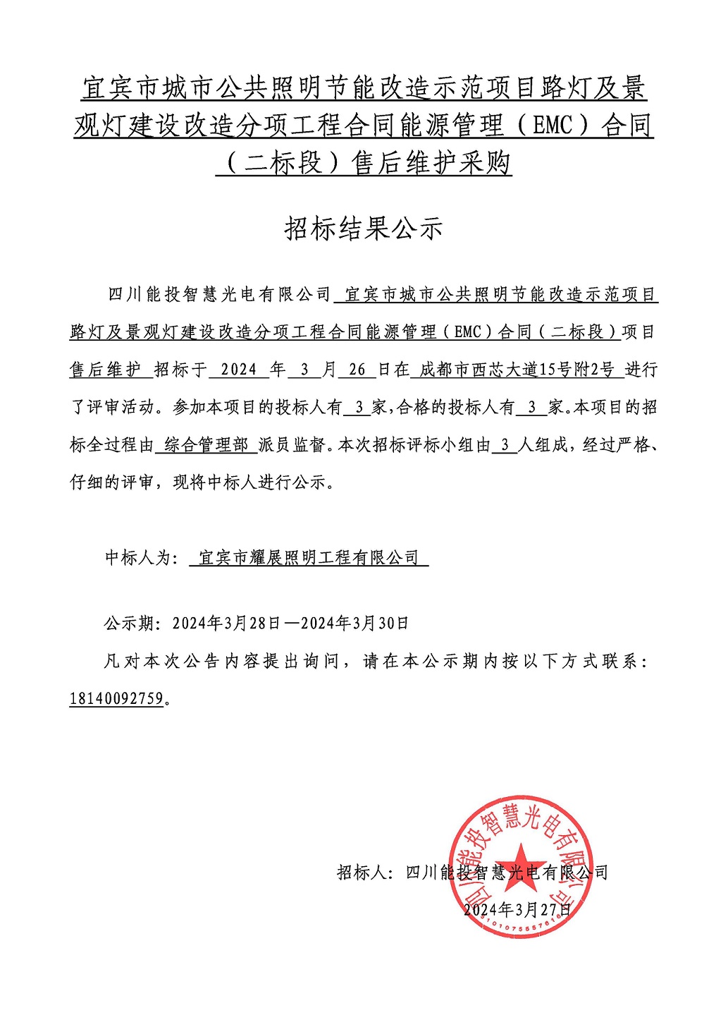 上一条:中国(绵阳)科技城激光技术应用产业园二期项目 (二标段)8#路、5#路、24#路、27#路智慧路灯照明工程专业分包流标公示