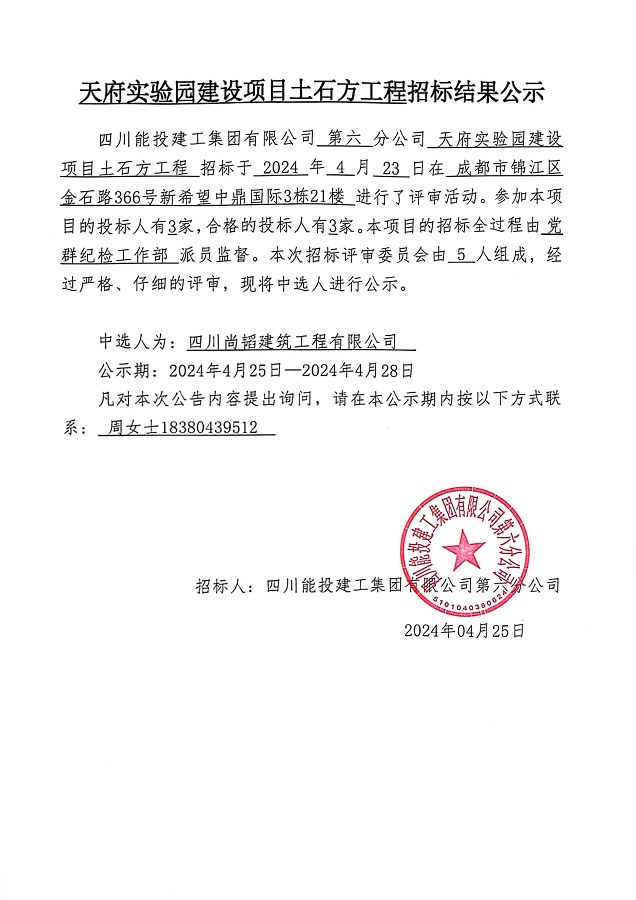 下一条:扩建实验小学外国语学校项目土建工程(不包含地下室土石方工程、地基处理工程、边坡支护工程、降排水工程)、安装工程、总平工程劳务分包流标公示