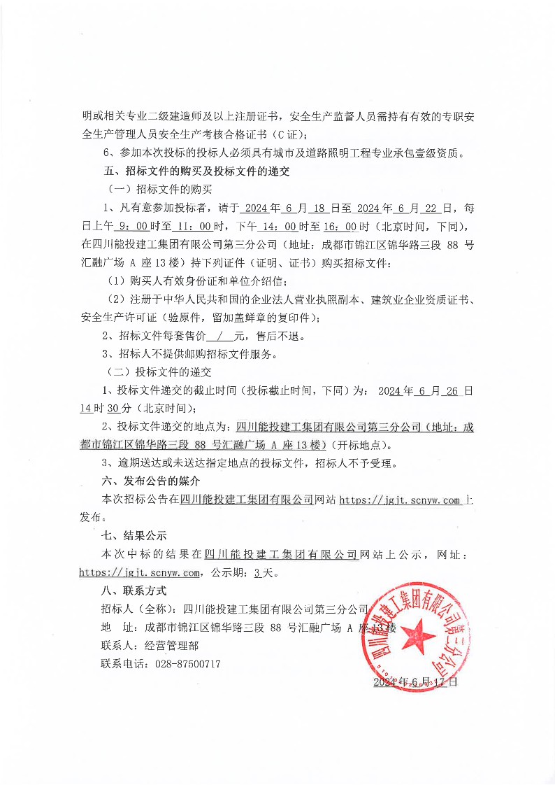 中国(绵阳)科技城激光技术应用产业园二期项目(二标段)8#路、5#路、24#路、27#路智慧路灯照明工程专业分包(第二次)招标公告