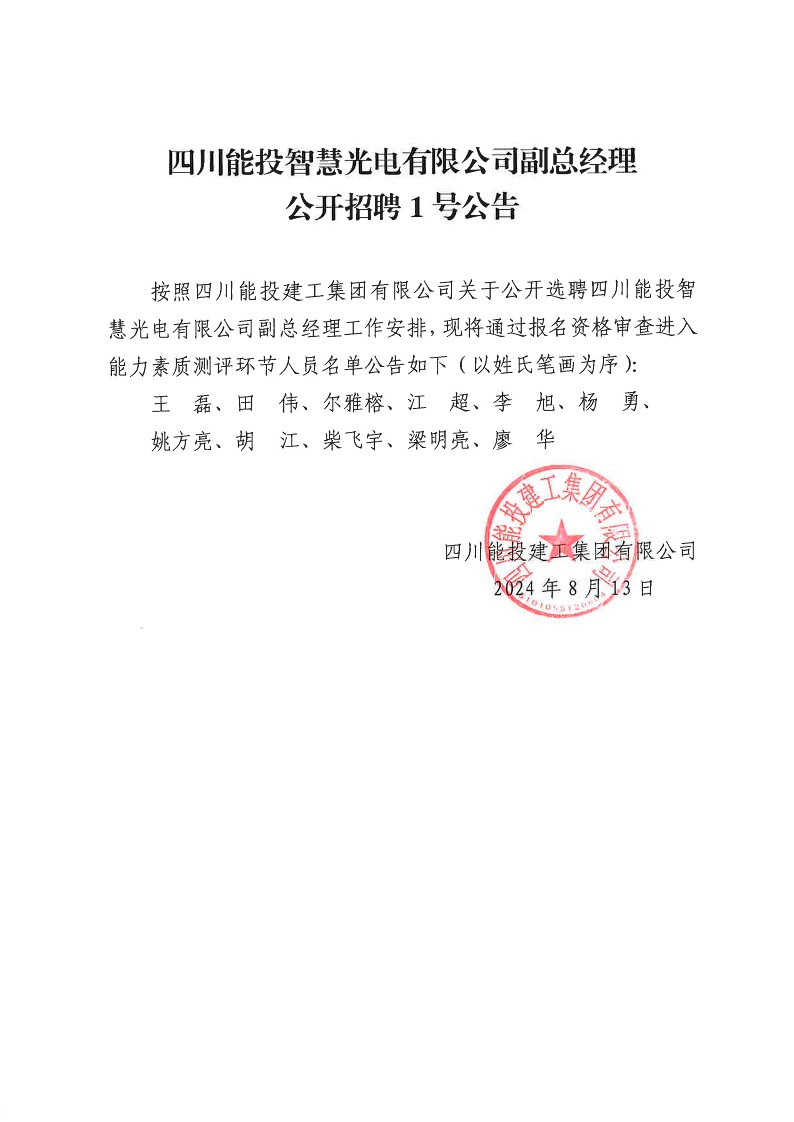 四川能投智慧光电有限公司副总经理公开招聘1号公告