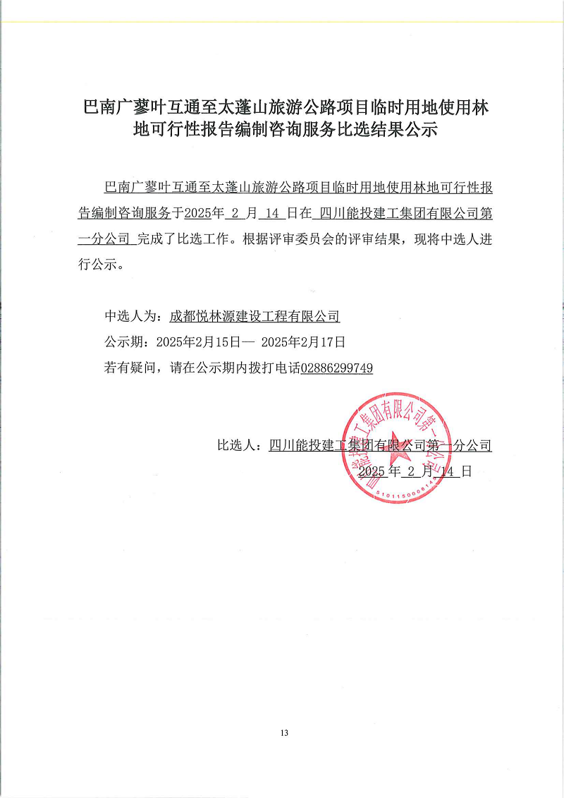 下一条:巴南广蓼叶互通至太蓬山旅游公路项目临时用地使用林地可行性报告编制咨询服务比选公告