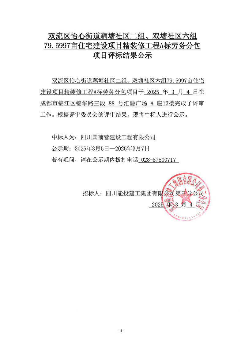 上一条:聊城高新技术产业开发区新河社区(剩余工程)(EPC)项目北区装饰装修工程二标段劳务分包项目评标结果公示