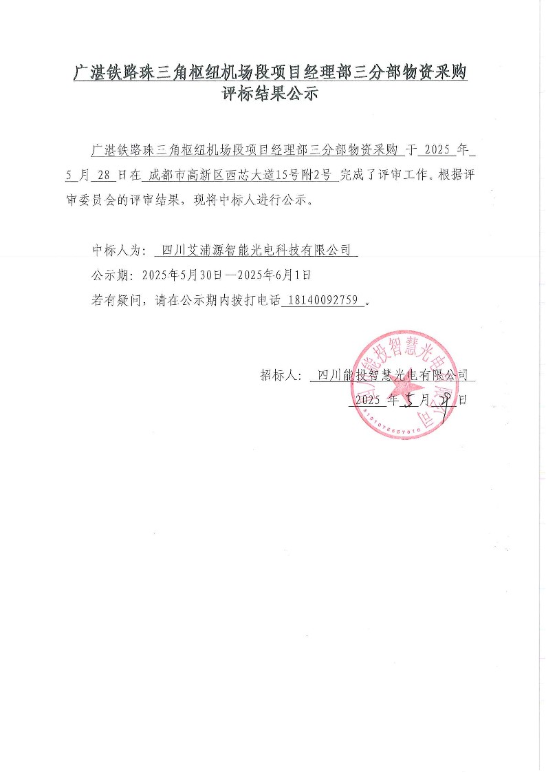 广湛铁路珠三角枢纽机场段项目经理部三分部物资采购结果公示
