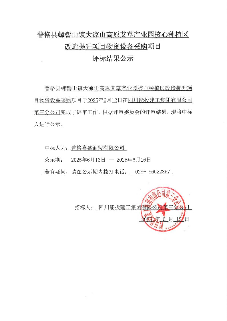 下一条:普格县螺髻山镇大凉山高原艾草产业园核心种植区改造提升项目机械设备租赁项目评标结果公示