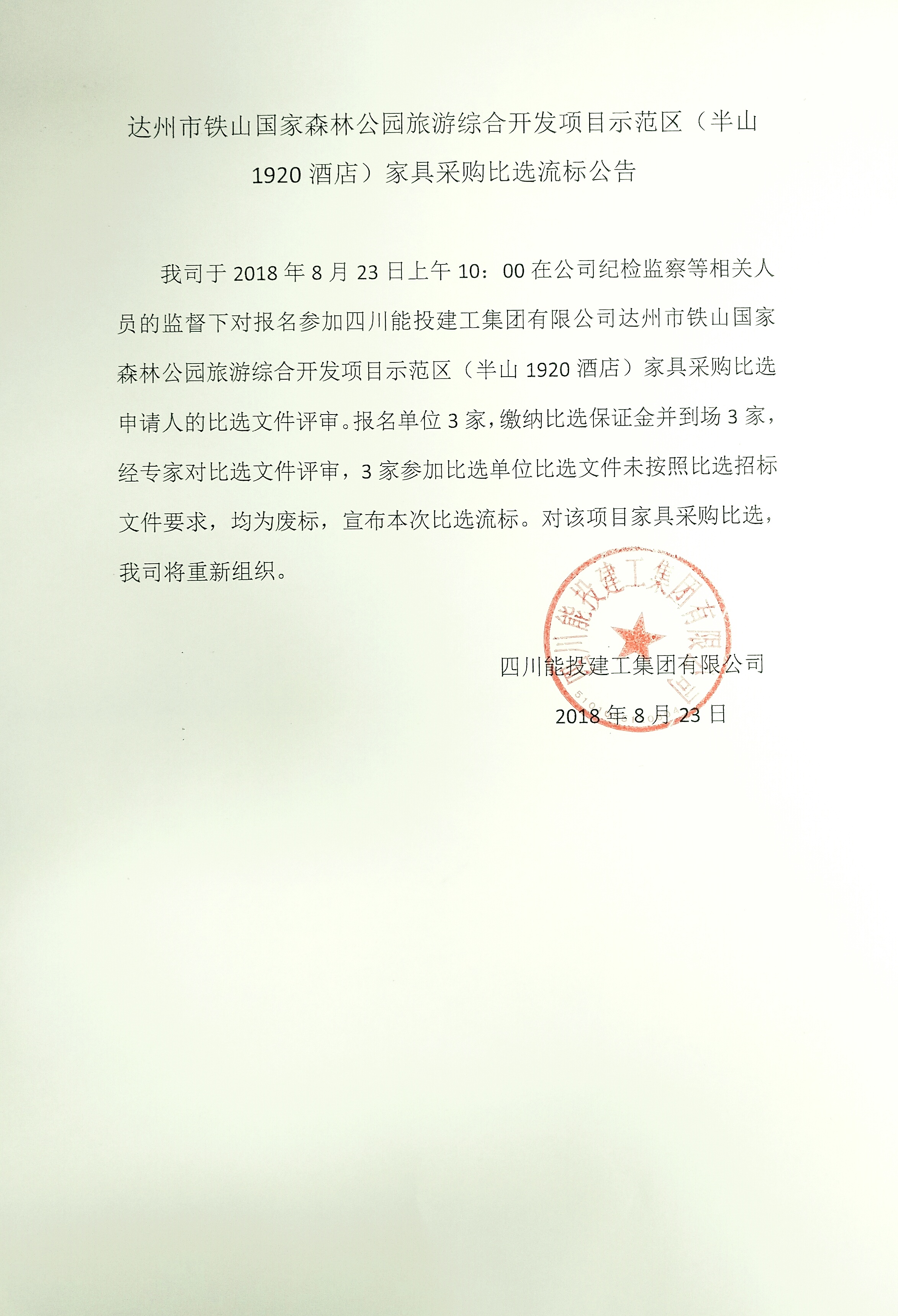 下一条:达州市铁山国家森林公园旅游综合开发项目示范区(半山1920酒店)家具采购 比选公告
